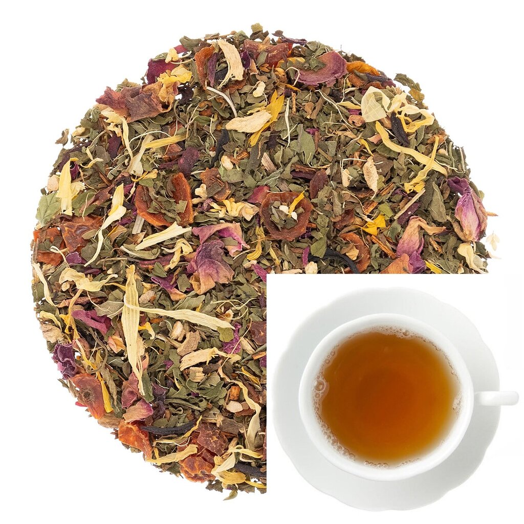 Makes you want to dance. Light tart fruity mint opens your palate, floral and fruit follow and finishes with piquant ginger. Life goodness in a cup..