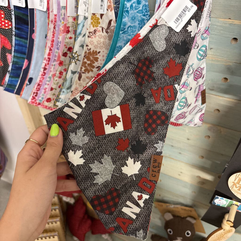 Add a personal touch to your furry friend's style with our custom-made dog bandanas! Whether you're celebrating a special occasion or want your dog to stand out at the park, we have the perfect bandana! They're reversible, professionally top-stitched, and come with snaps. They can be tied, snapped, or a mix of both, keeping them secure on pup's neck and allowing for adaptability as your puppy grows (if applicable). Bandanas are reversible, extending wardrobe options! The second side features a complementary fabric. Small - fits up to 19", Medium - fits up to 22", Large fits up to 25". Made with love. Made to love. Proudly Canadian.
