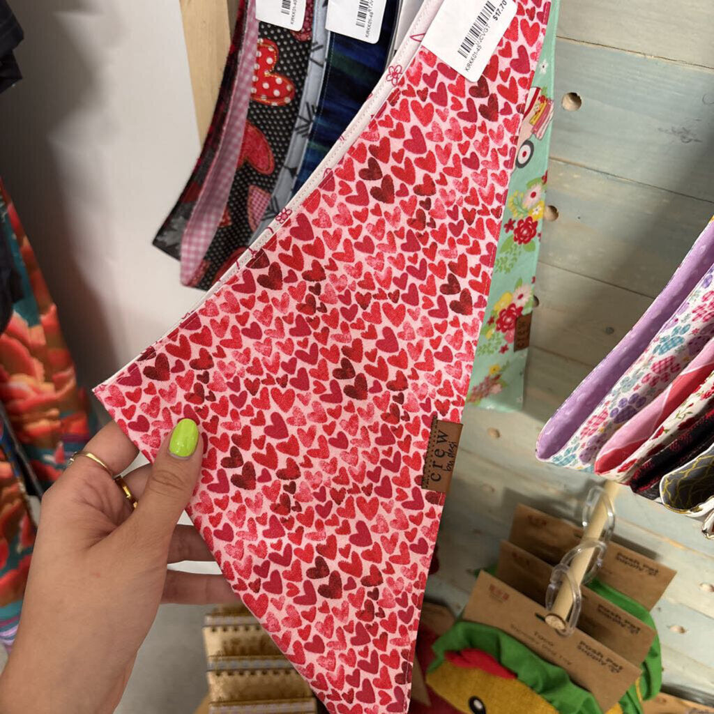 Add a personal touch to your furry friend's style with our custom-made dog bandanas! Whether you're celebrating a special occasion or want your dog to stand out at the park, we have the perfect bandana! They're reversible, professionally top-stitched, and come with snaps. They can be tied, snapped, or a mix of both, keeping them secure on pup's neck and allowing for adaptability as your puppy grows (if applicable). Bandanas are reversible, extending wardrobe options! The second side features a complementary fabric. Small - fits up to 19", Medium - fits up to 22", Large fits up to 25". Made with love. Made to love. Proudly Canadian.