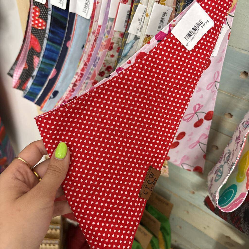 Add a personal touch to your furry friend's style with our custom-made dog bandanas! Whether you're celebrating a special occasion or want your dog to stand out at the park, we have the perfect bandana! They're reversible, professionally top-stitched, and come with snaps. They can be tied, snapped, or a mix of both, keeping them secure on pup's neck and allowing for adaptability as your puppy grows (if applicable). Bandanas are reversible, extending wardrobe options! The second side features a complementary fabric. Small - fits up to 19", Medium - fits up to 22", Large fits up to 25". Made with love. Made to love. Proudly Canadian.