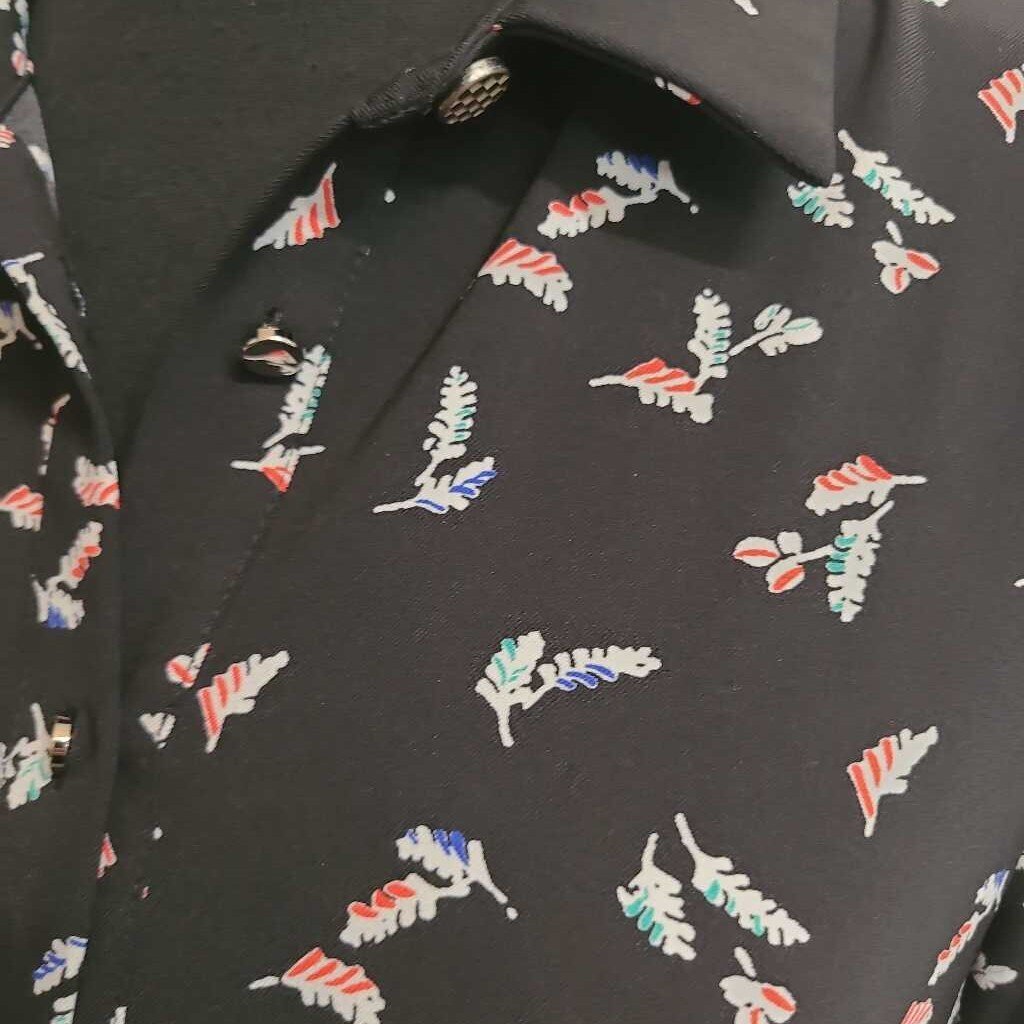 BLACK PRINT DRESS WITH PLEATED HEM