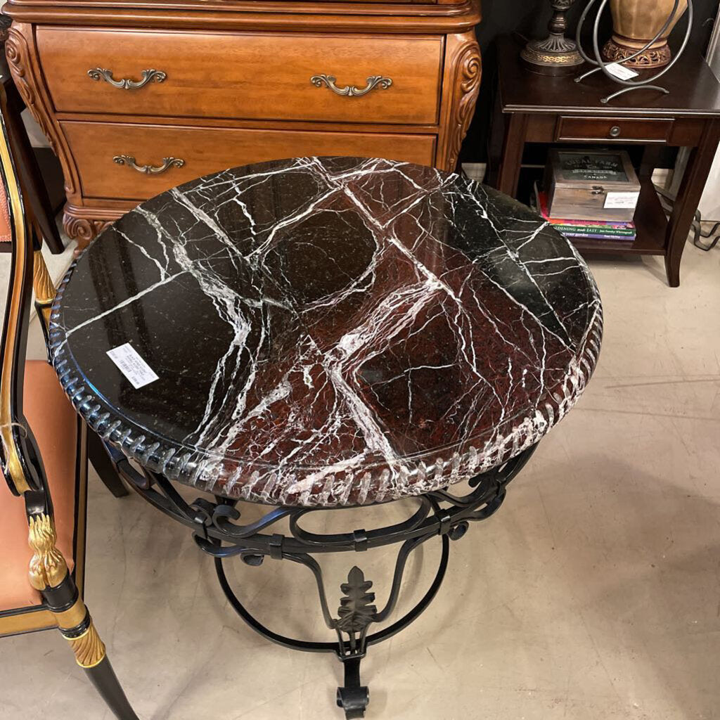 BLACK W/RED ACCENT MARBLE ACCENT TABLE