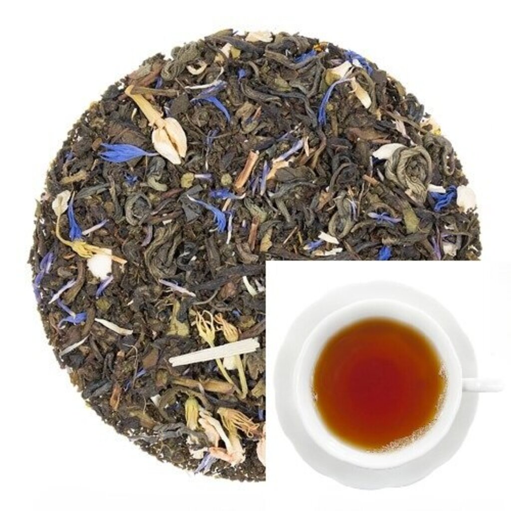 Green tea from the 4 corners of the empire. Yields a full and expansive cup. Beguiling jasmine dances throughout.