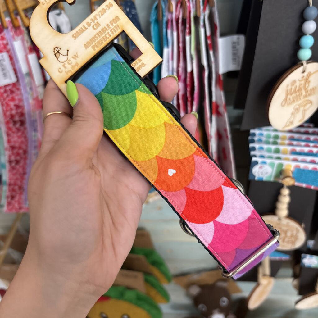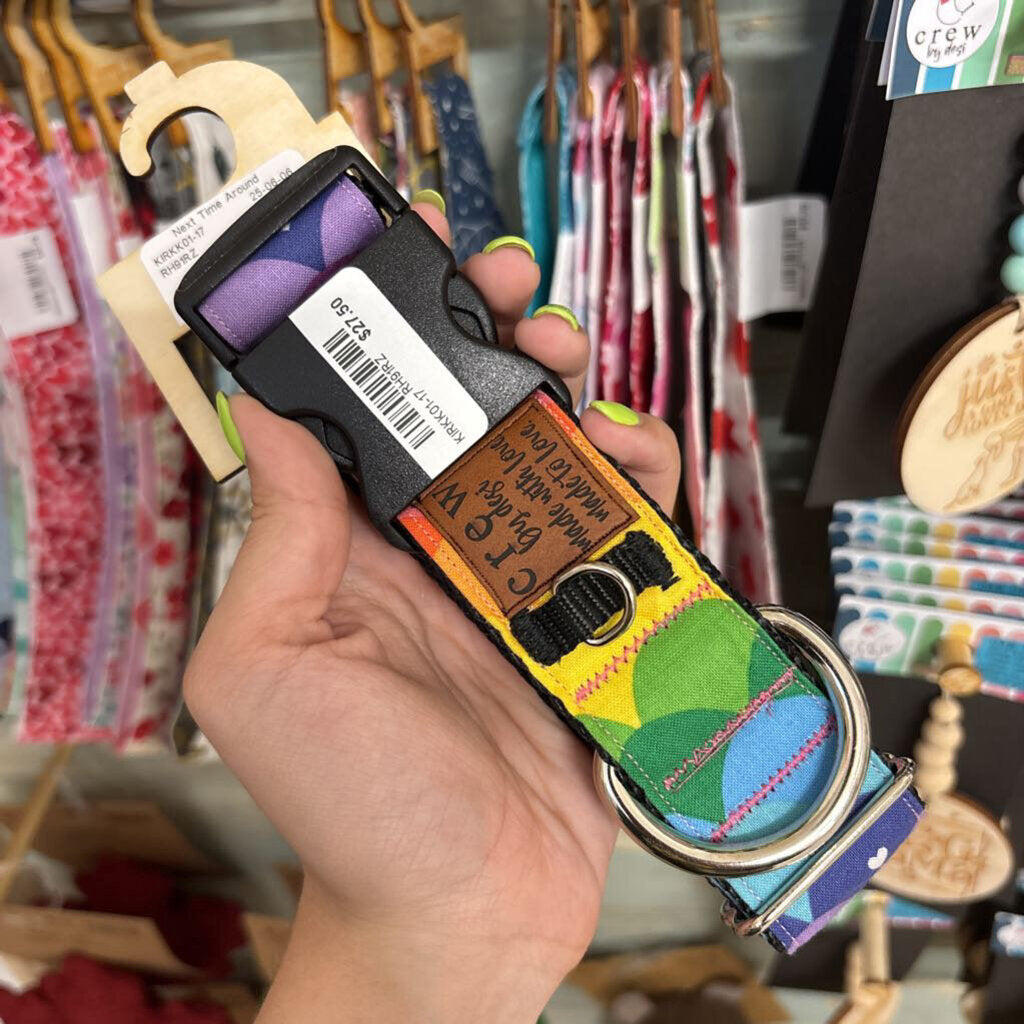 Imagine your furry friend looking stylish and feeling secure in a collar that's both durable and comfortable. At Crew by Desi, we believe your bestie deserves the best, so we craft each collar with the utmost care and attention to detail. Our collars are made from high-quality materials, including a 100% cotton exterior and a strong nylon webbing interior. We use double lines of zig-zag stitching to secure hardware. A separate tag ring is included on all collars to easily attach an ID tag (and help reduce the jingle noise). Collars are treated with an eco-friendly stain deterrent spray and are hand washable. Use a mild detergent (i.e. Dawn dish soap) and soft brush, and lay flat or hang to dry. Enjoy all of the adventures and snuggle time with your well-dressed pal. Please remove collar during rough play, when unsupervised, or while pet is in crate/kennel. Made with love. Made to love. Proudly Canadian. Small 10-14" Med 12-18" Lg 16-24" XL 20-26"