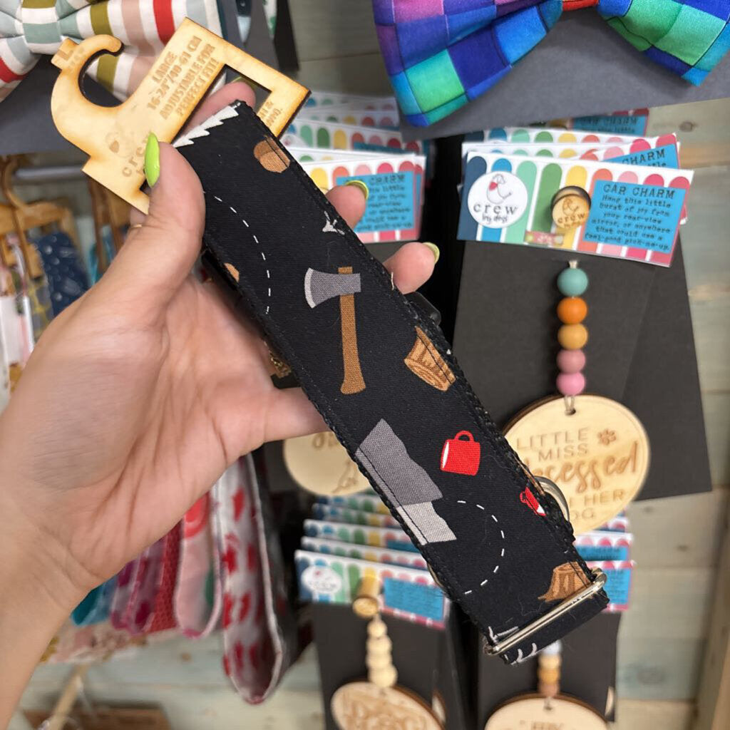 Imagine your furry friend looking stylish and feeling secure in a collar that's both durable and comfortable. At Crew by Desi, we believe your bestie deserves the best, so we craft each collar with the utmost care and attention to detail. Our collars are made from high-quality materials, including a 100% cotton exterior and a strong nylon webbing interior. We use double lines of zig-zag stitching to secure hardware. A separate tag ring is included on all collars to easily attach an ID tag (and help reduce the jingle noise). Collars are treated with an eco-friendly stain deterrent spray and are hand washable. Use a mild detergent (i.e. Dawn dish soap) and soft brush, and lay flat or hang to dry. Enjoy all of the adventures and snuggle time with your well-dressed pal. Please remove collar during rough play, when unsupervised, or while pet is in crate/kennel. Made with love. Made to love. Proudly Canadian. Small 10-14" Med 12-18" Lg 16-24" XL 20-26"
