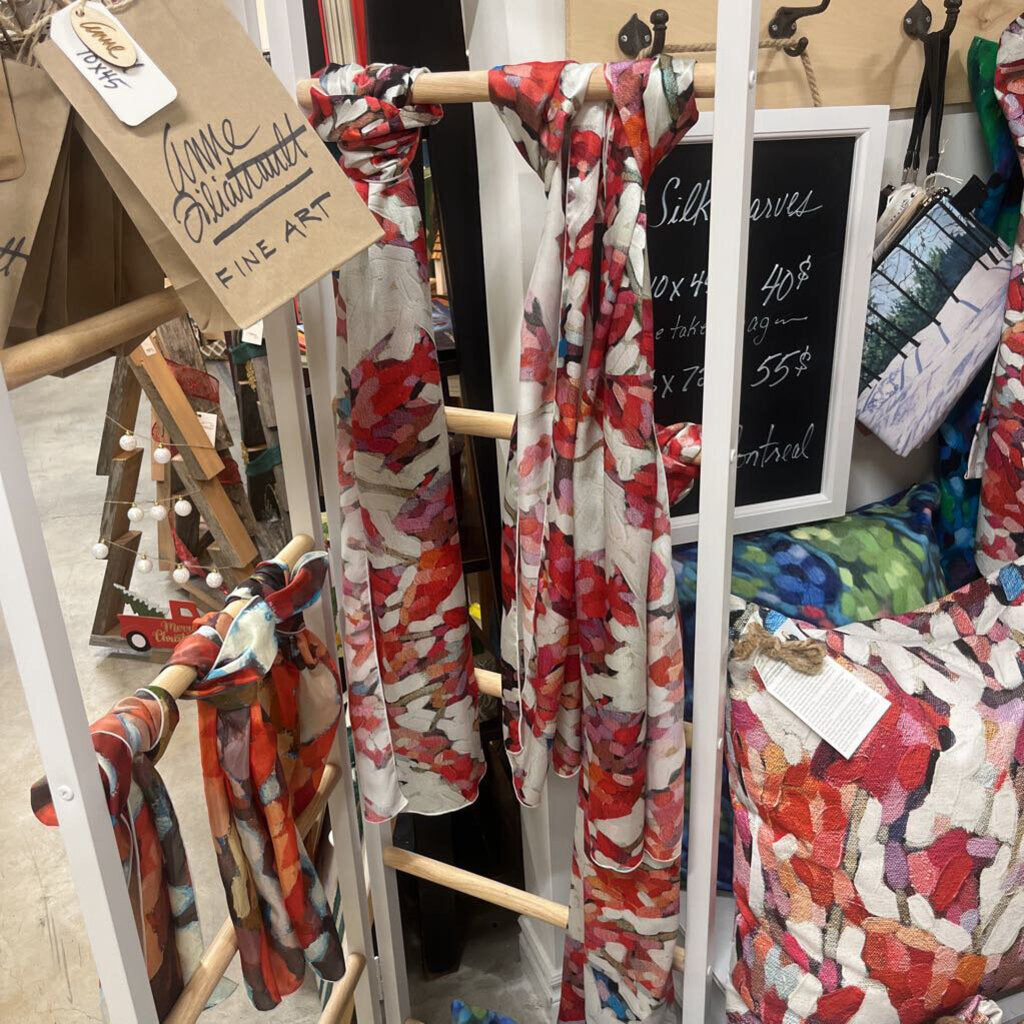 generous 16"wide x 72" long, crimson pink and orange leaves, silk charmeuse, bag provided