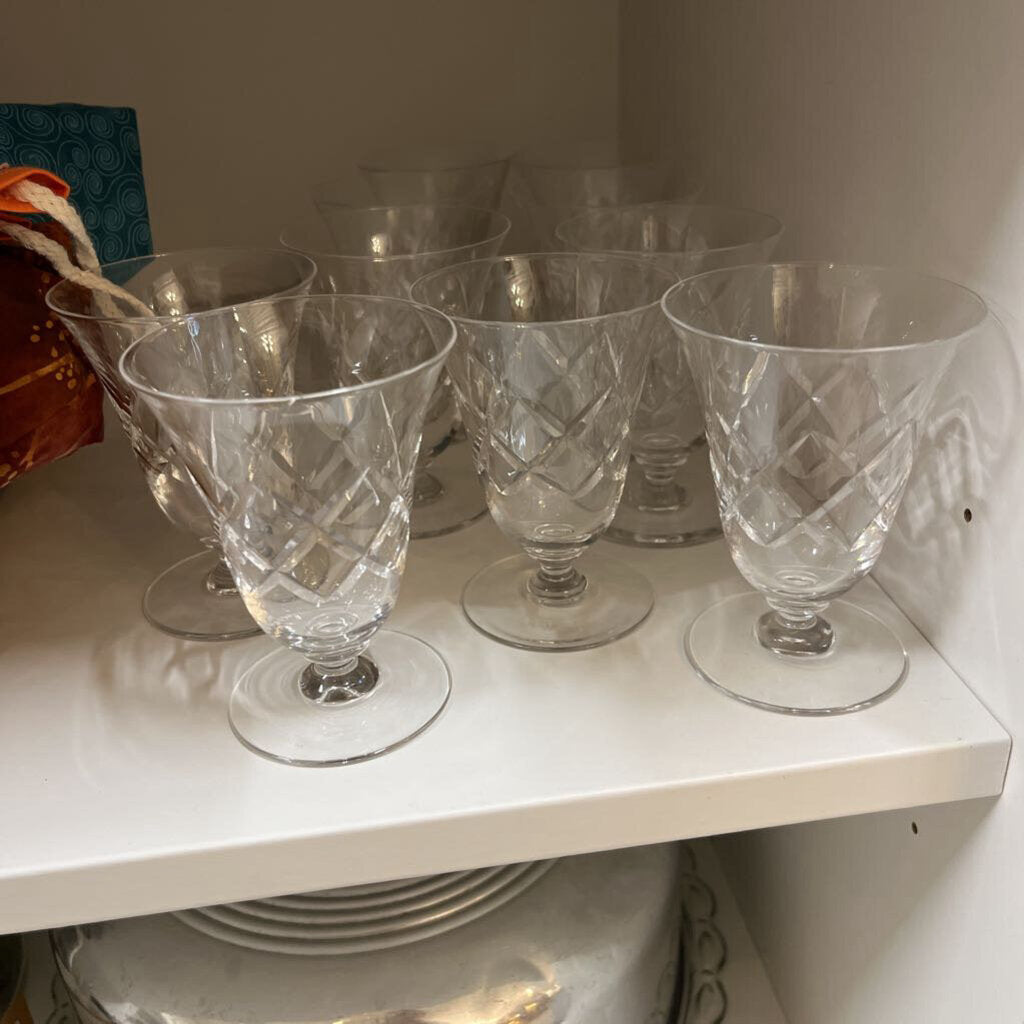 VTG - set of 10, Webb Corbett footed Crystal juice glasses, Georgian pattern