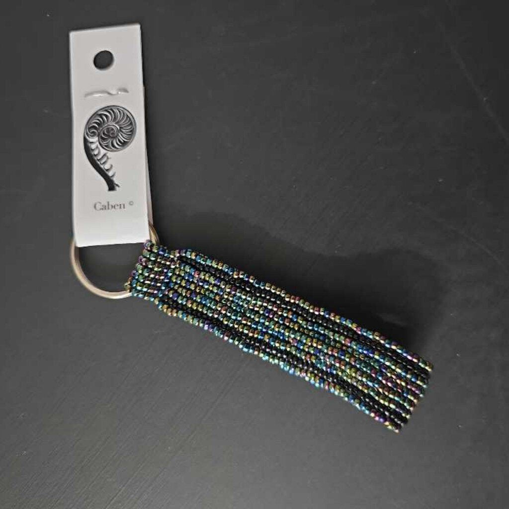 Hand-crafted Glass Bead Keychain Rainbow Black