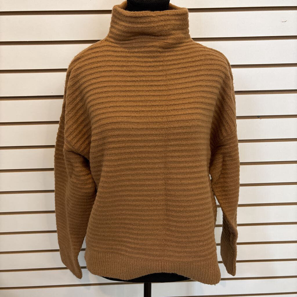 MOCK NECK CAMEL BROWN TEXTURED SWEATER