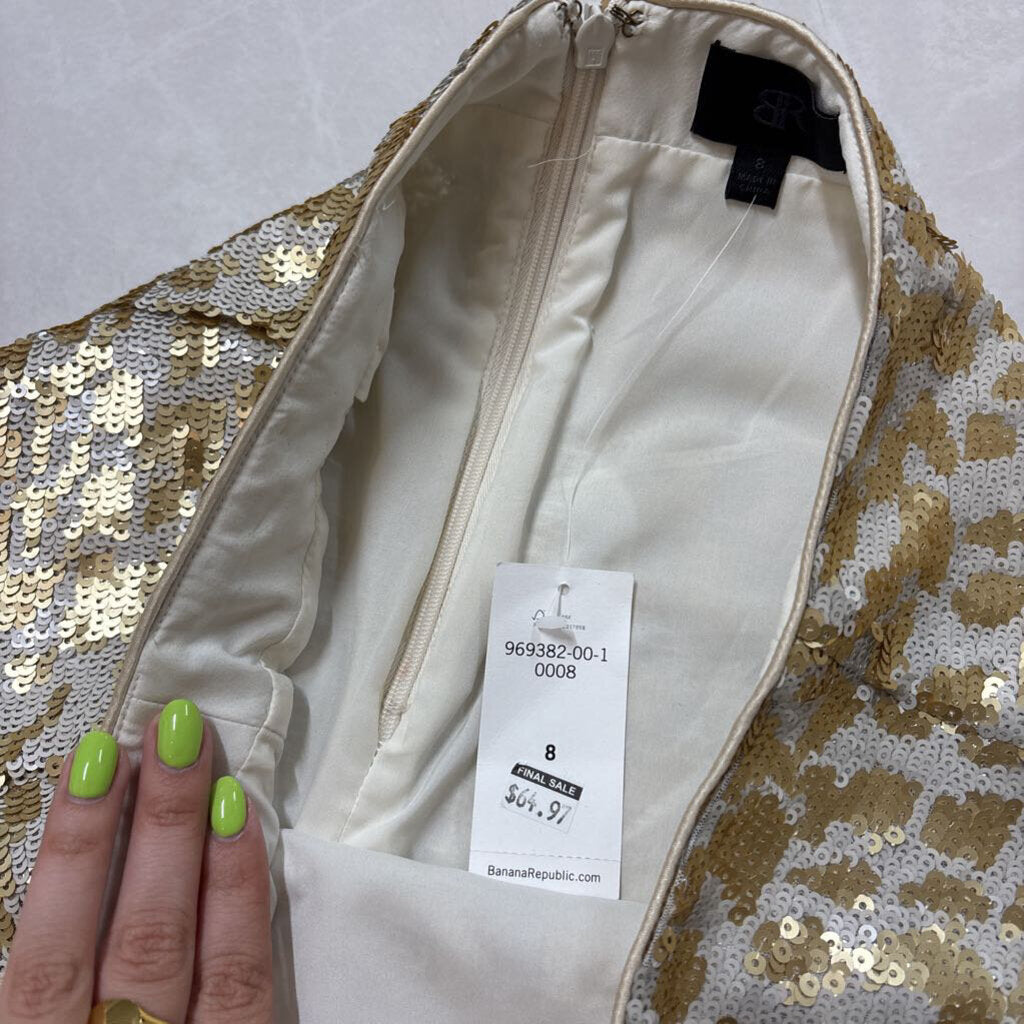 NWT SEQUINS GOLD & WHITE MINI SKIRT