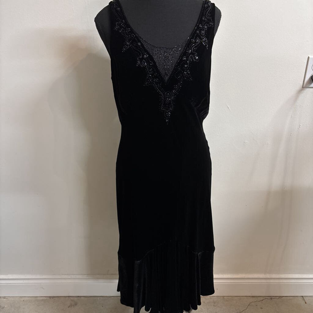 VELVET BLACK DRESS W/BEADED NECKLINE