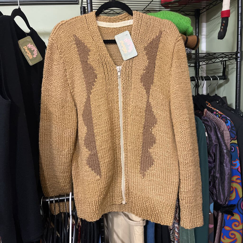VINTAGE BEIGE FULL ZIP LONG SLEEVE SWEATER