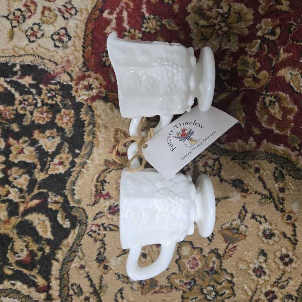 VINTAGE MILK GLASS CREAMER & SUGAR BOWL PANELED GRAPE