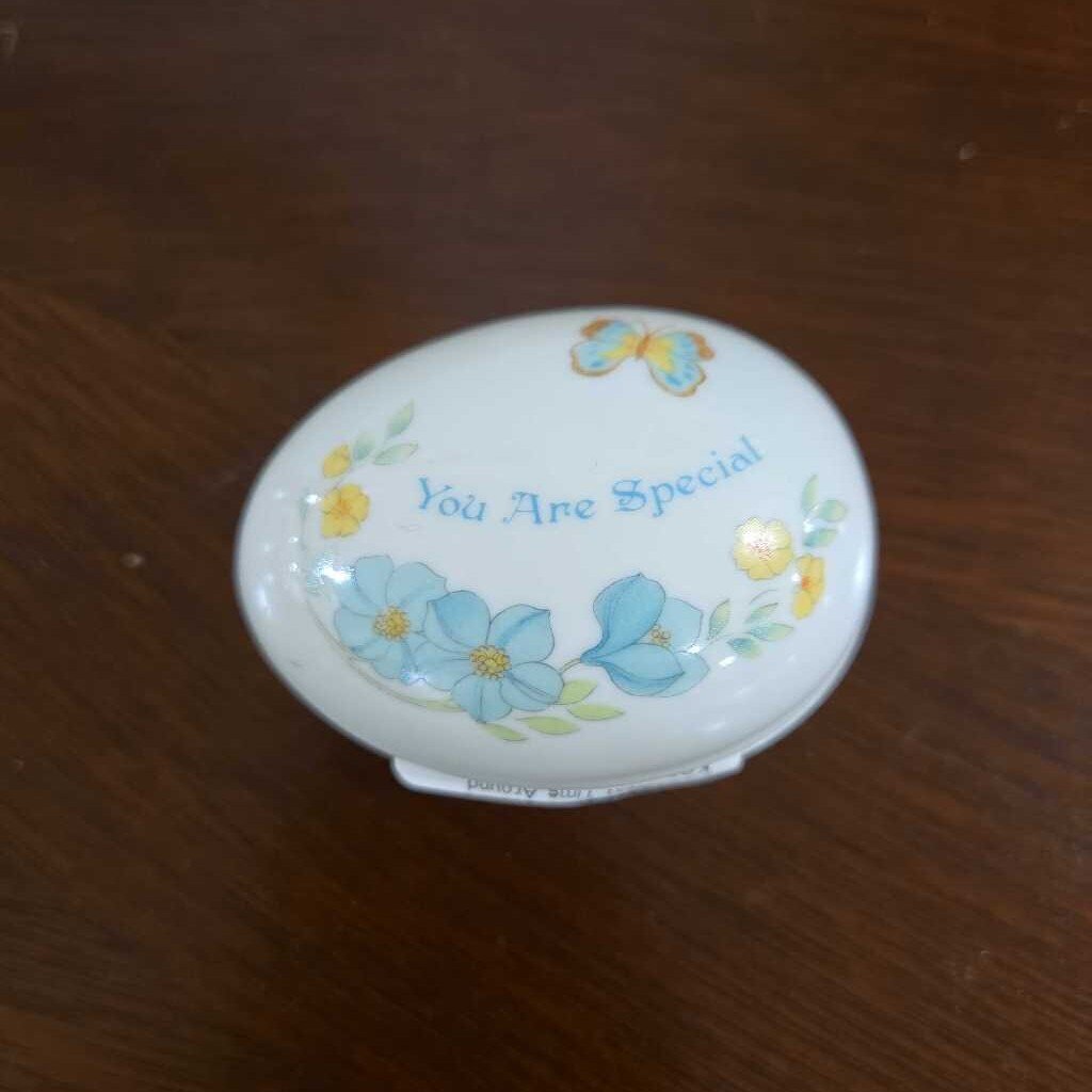 VTG EGG SHAPE CERAMIC TRINKET BOX FLORAL & BUTTERFLY
