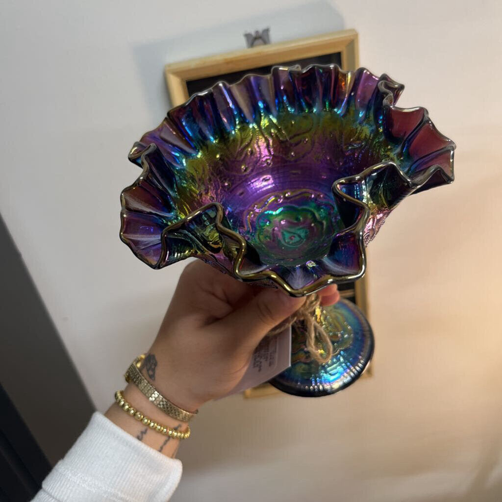 VTG FENTON AMETHYST CARNIVAL GLASS COMPOTE